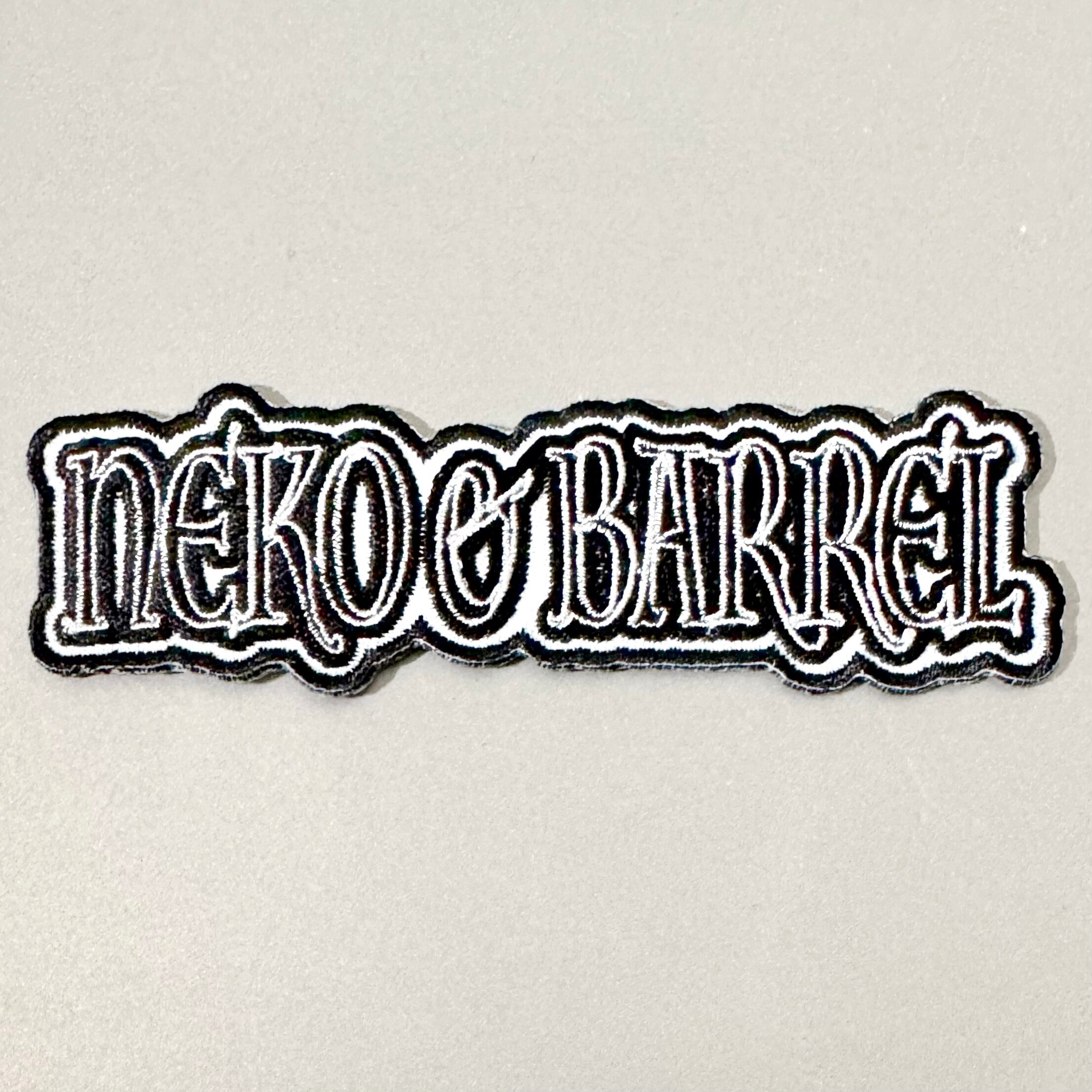 オリジナルウイスキーラベルのデザイン「NEKO&BARREL」のロゴのフォントを変えてワッペンにしました。
