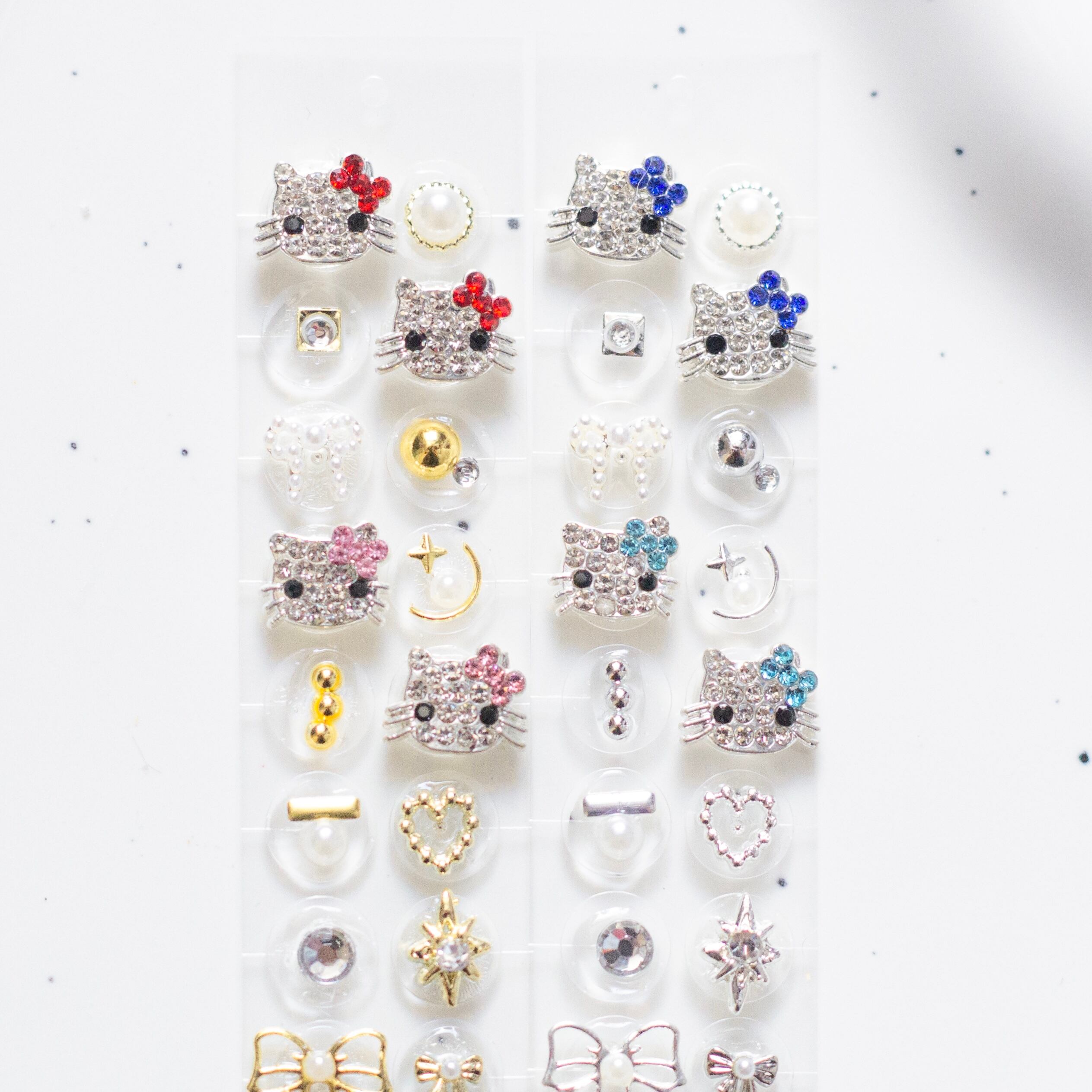 耳つぼジュエリー キャラクター01 猫 シルバー ゴールド レッド ブルー 純チタン粒