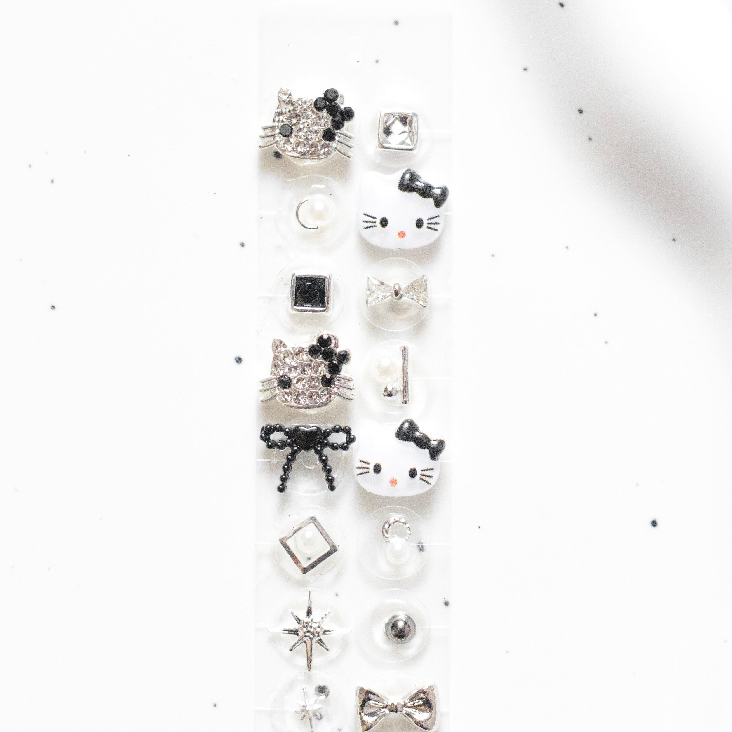 耳つぼジュエリー キャラクター06 猫 シルバー ブラック モノトーン 純チタン粒