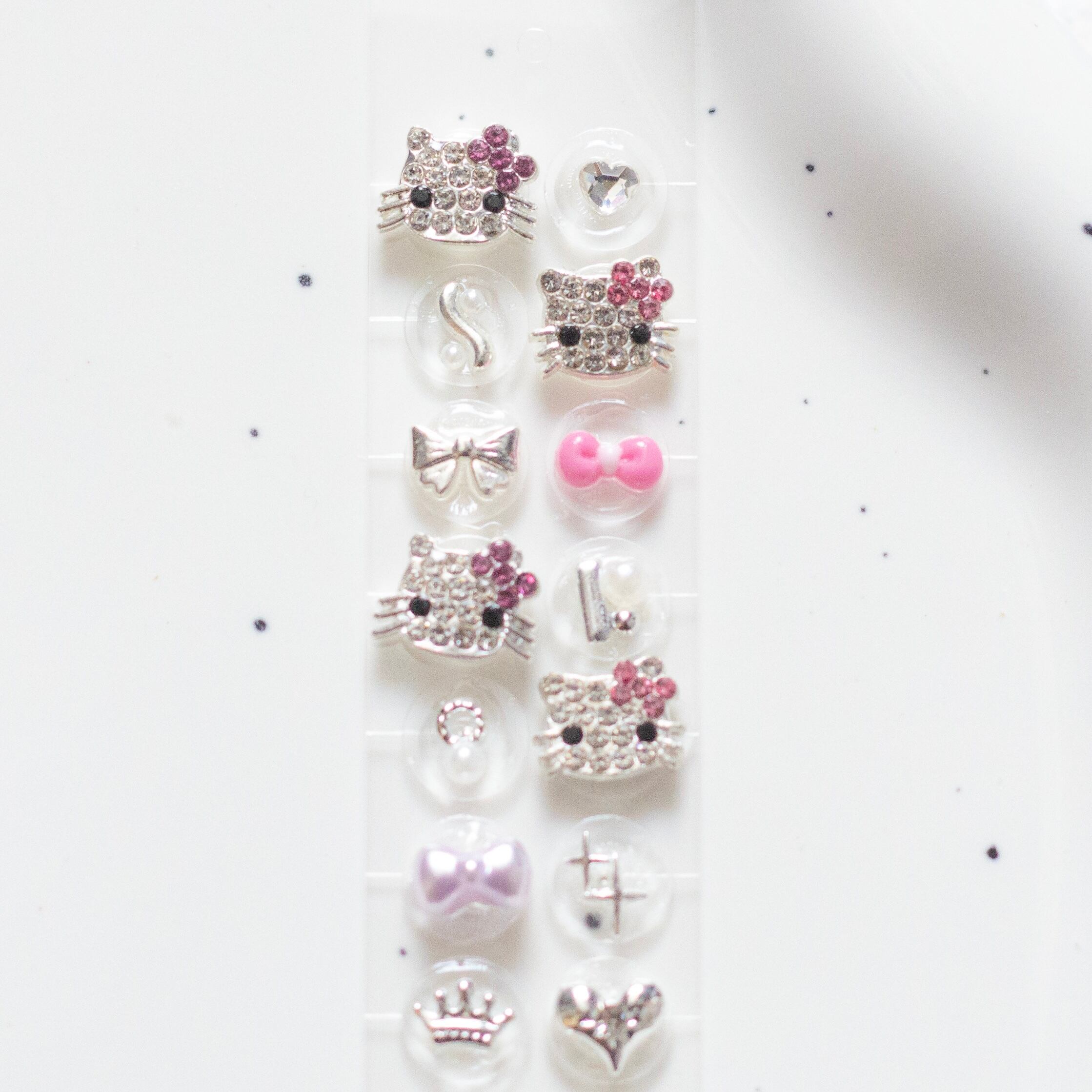 耳つぼジュエリー キャラクター08 猫 シルバー パープル 紫 ピンク 純チタン粒