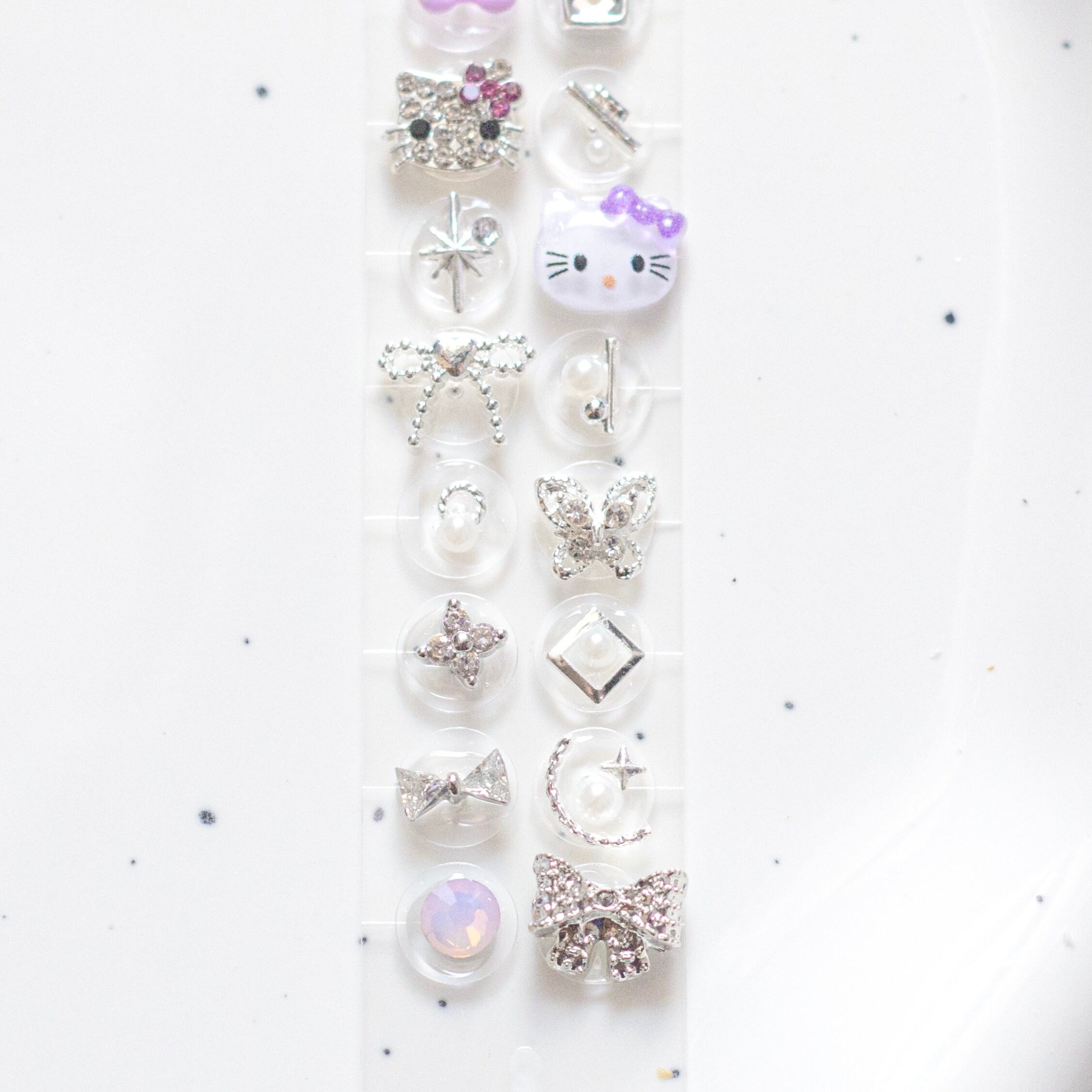 耳つぼジュエリー キャラクター10 猫 シルバー パープル 紫 純チタン粒