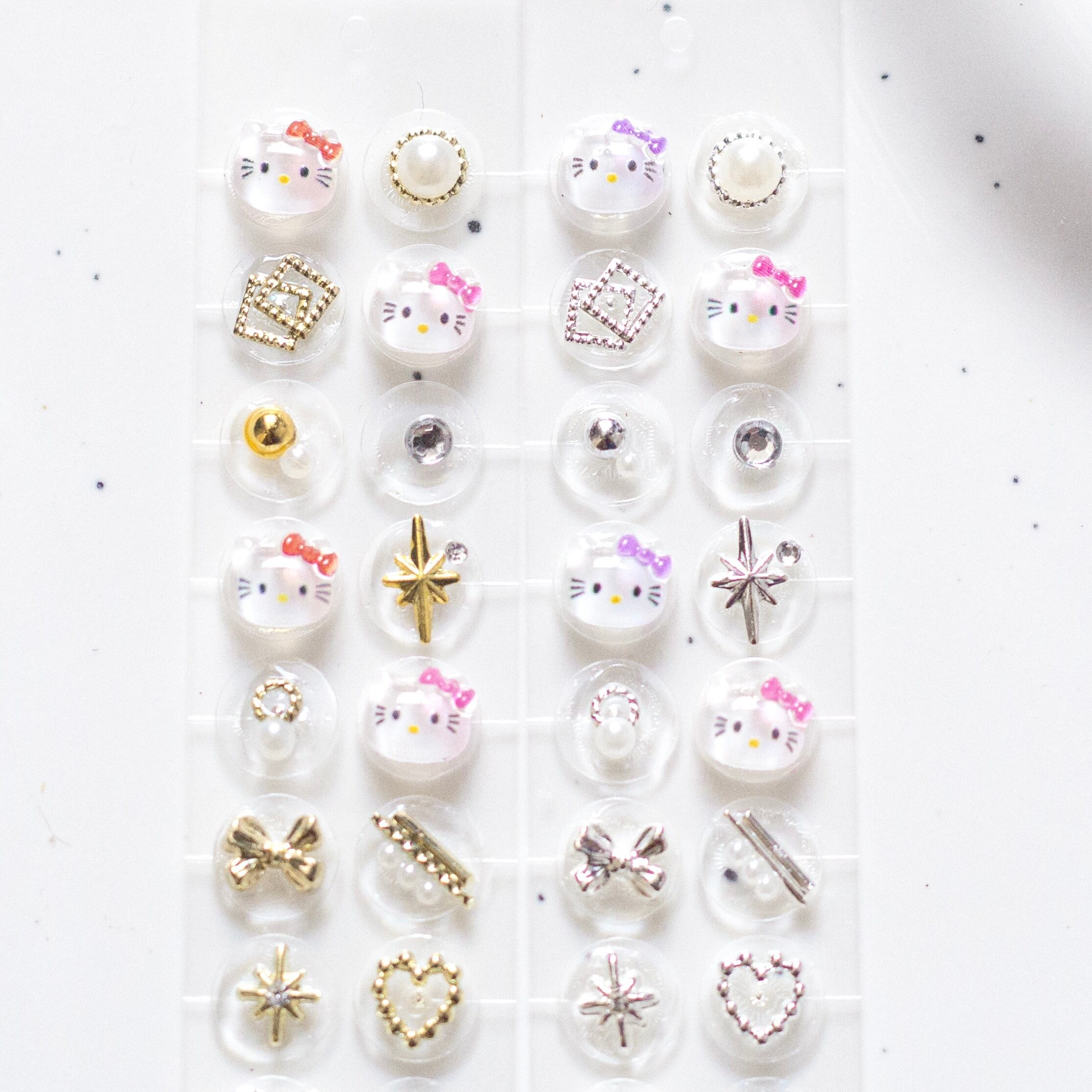 耳つぼジュエリー キャラクター11 猫 シルバー ゴールド 赤 レッド ピンク 紫 パープル 純チタン粒
