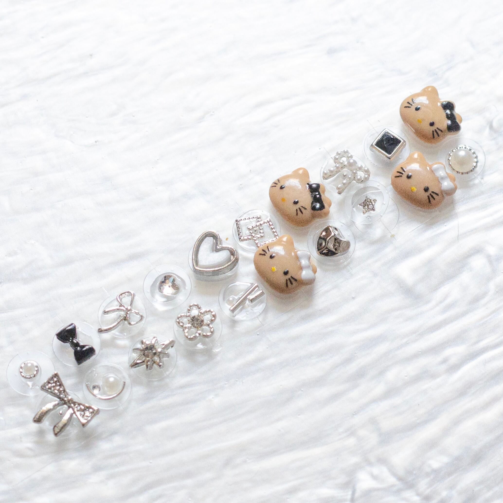 耳つぼジュエリー キャラクター15 日焼け 猫 シルバー モノトーン 純チタン粒