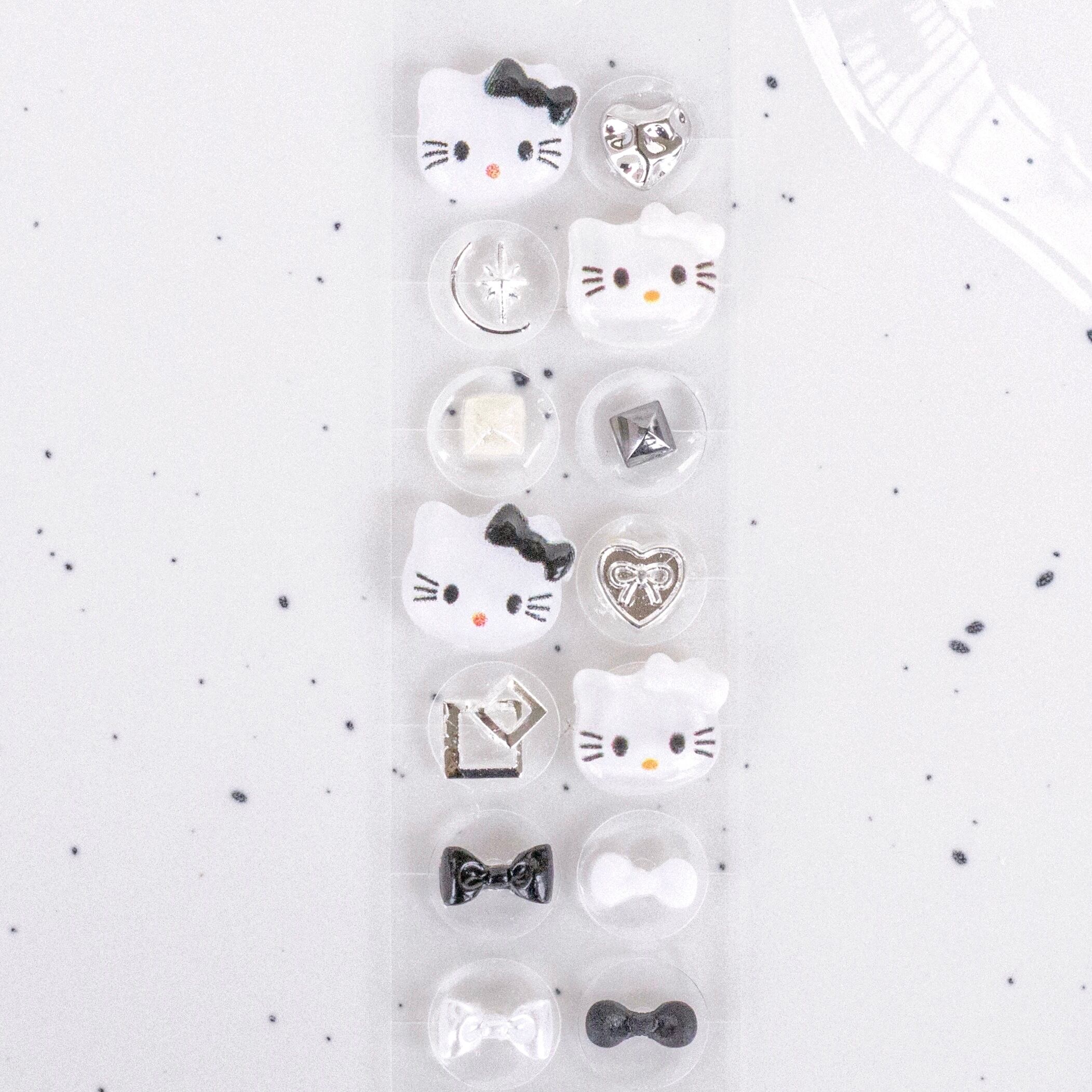 耳つぼジュエリー キャラクター17 猫 シルバー ブラック モノトーン 純チタン粒