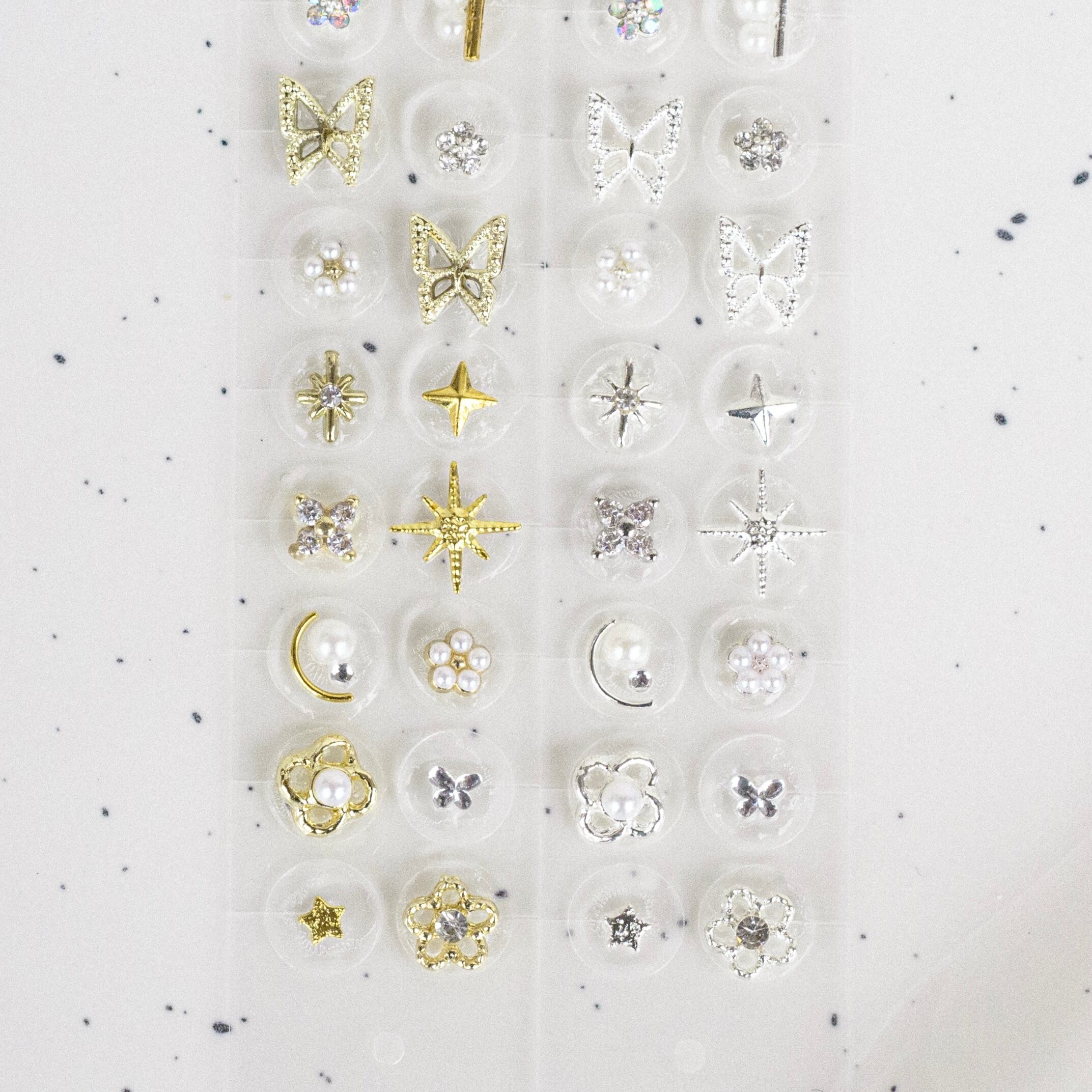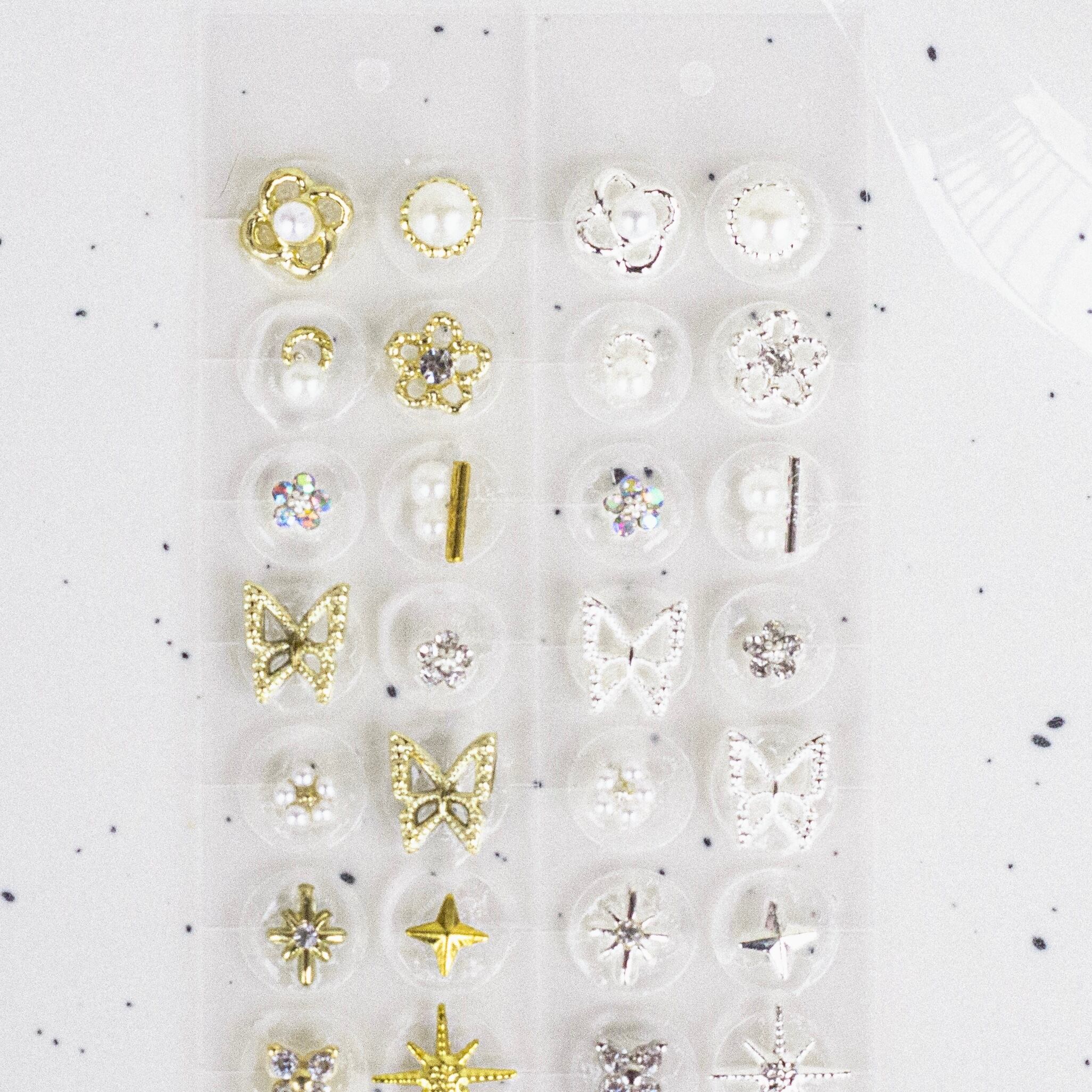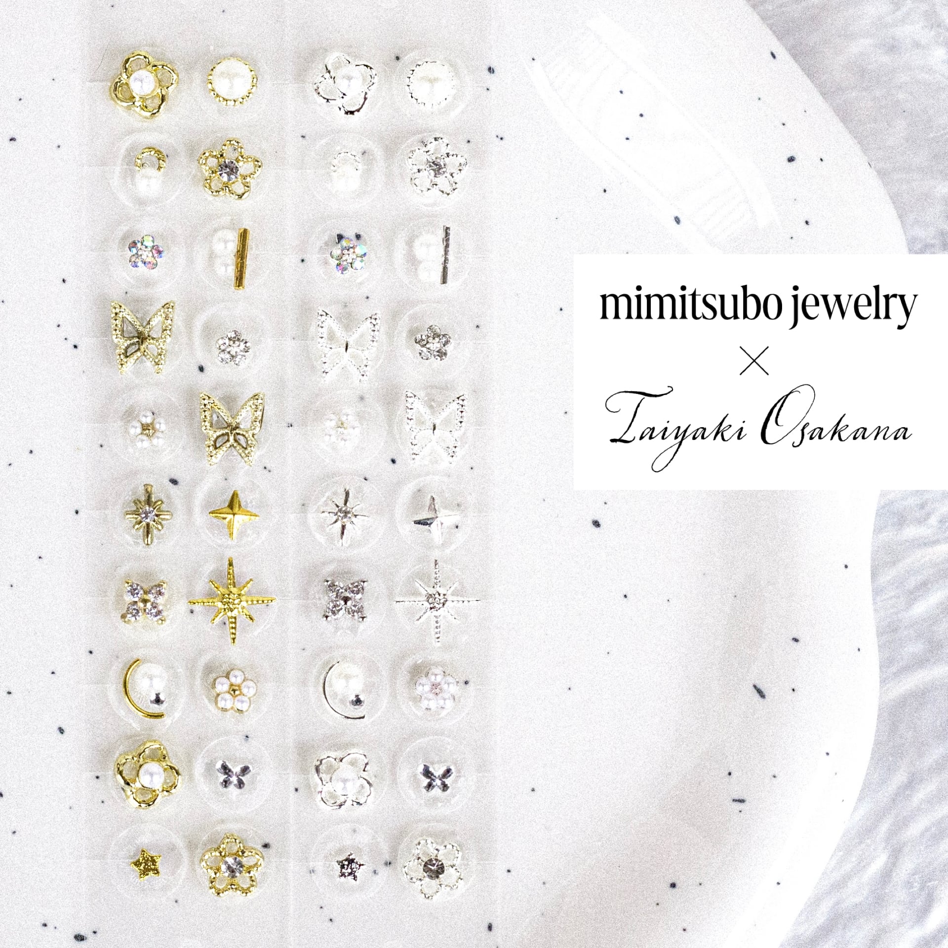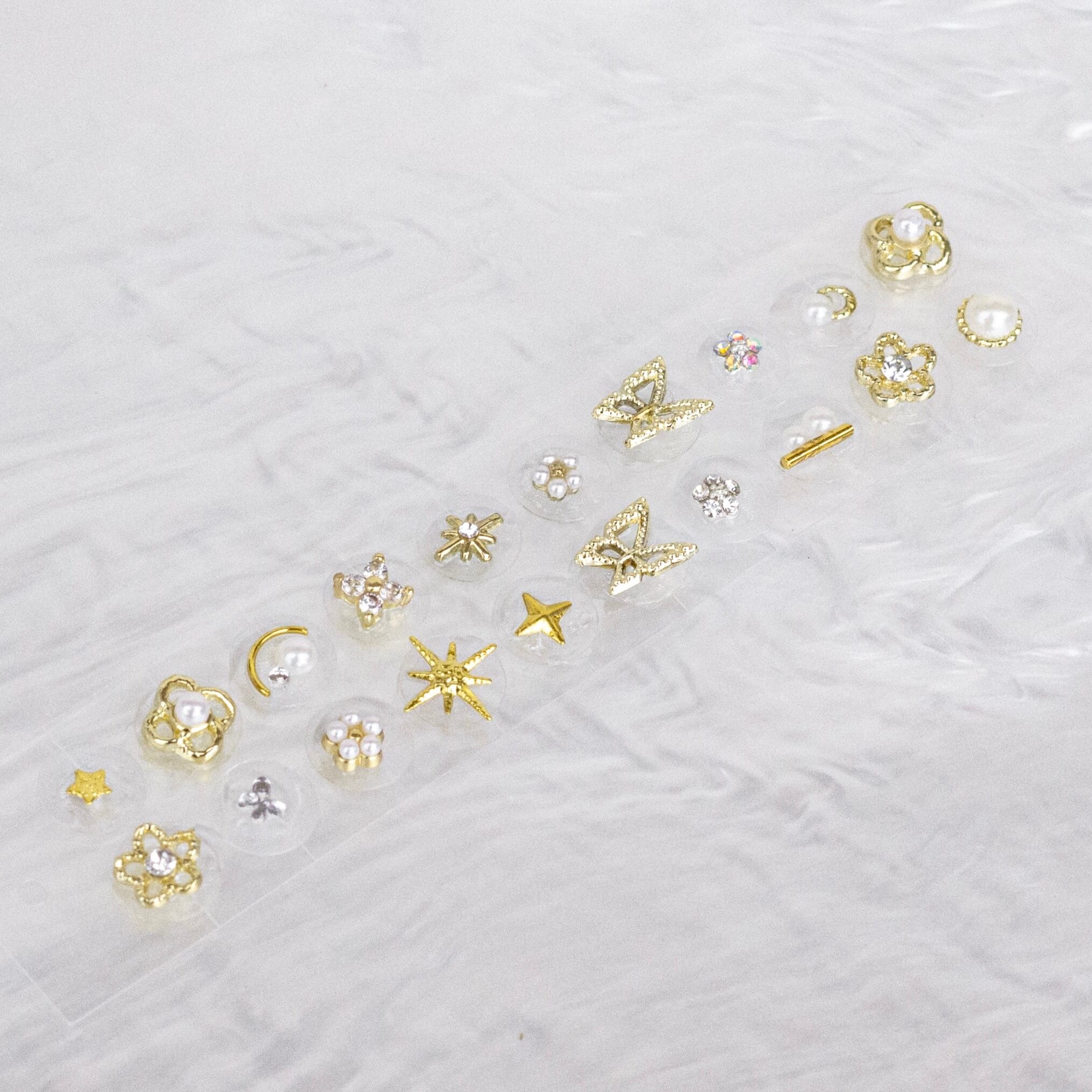 耳つぼジュエリー モチーフ03 花畑 フラワー 蝶々 ゴールド シルバー 純チタン粒