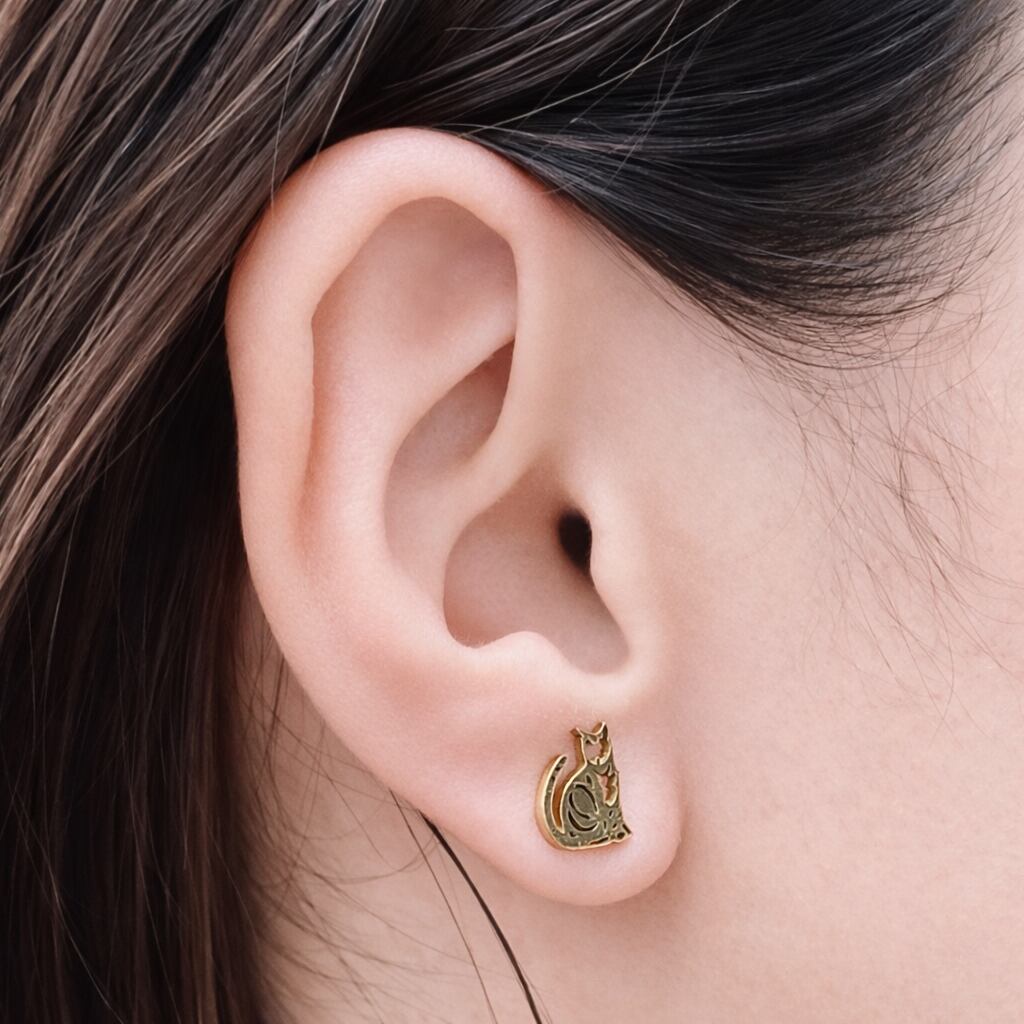 メタルピアスミニ 猫 ねこ ネコ アメリカンショートヘア アメショー サバトラ キジトラ ゴールド シルバー | Taiyaki Osakana