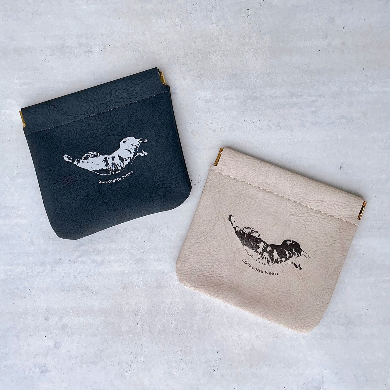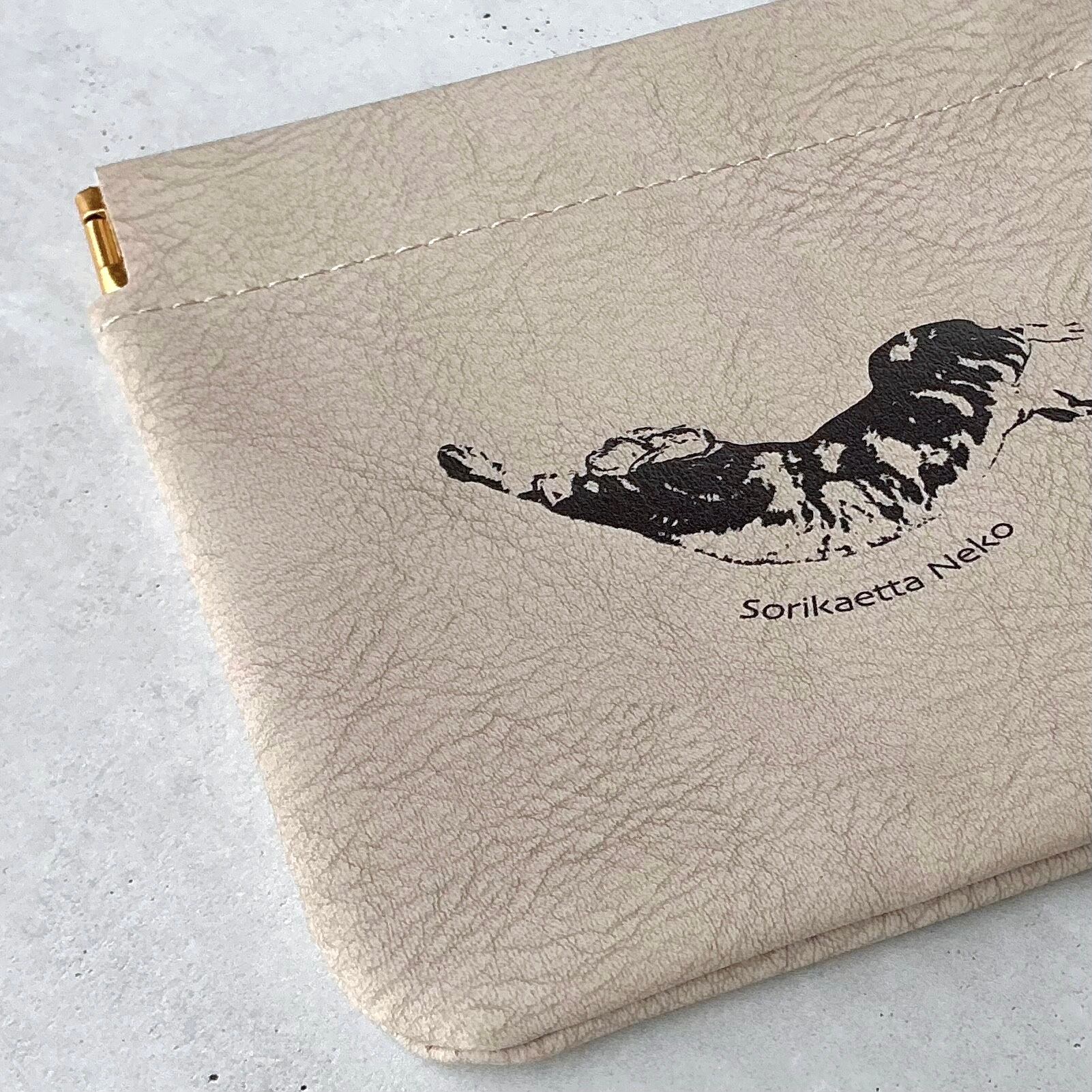 PUレザーバネ口ポーチ ヴェアリー・イージー・オープンスリムポーチ 猫 ネコ ねこ アメリカンショートヘア アメショー Sorikaetta Neko | Taiyaki Osakana