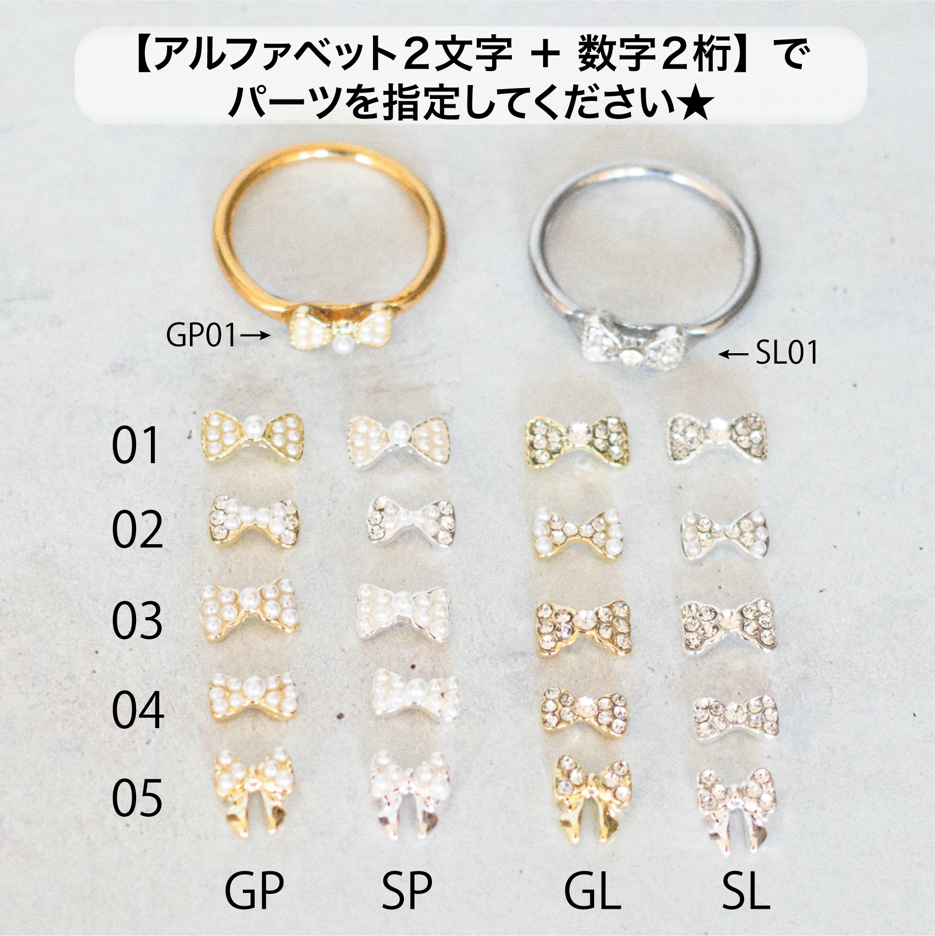 ●リボンパーツのメタルカラーと同じ色のリングでお作りします。