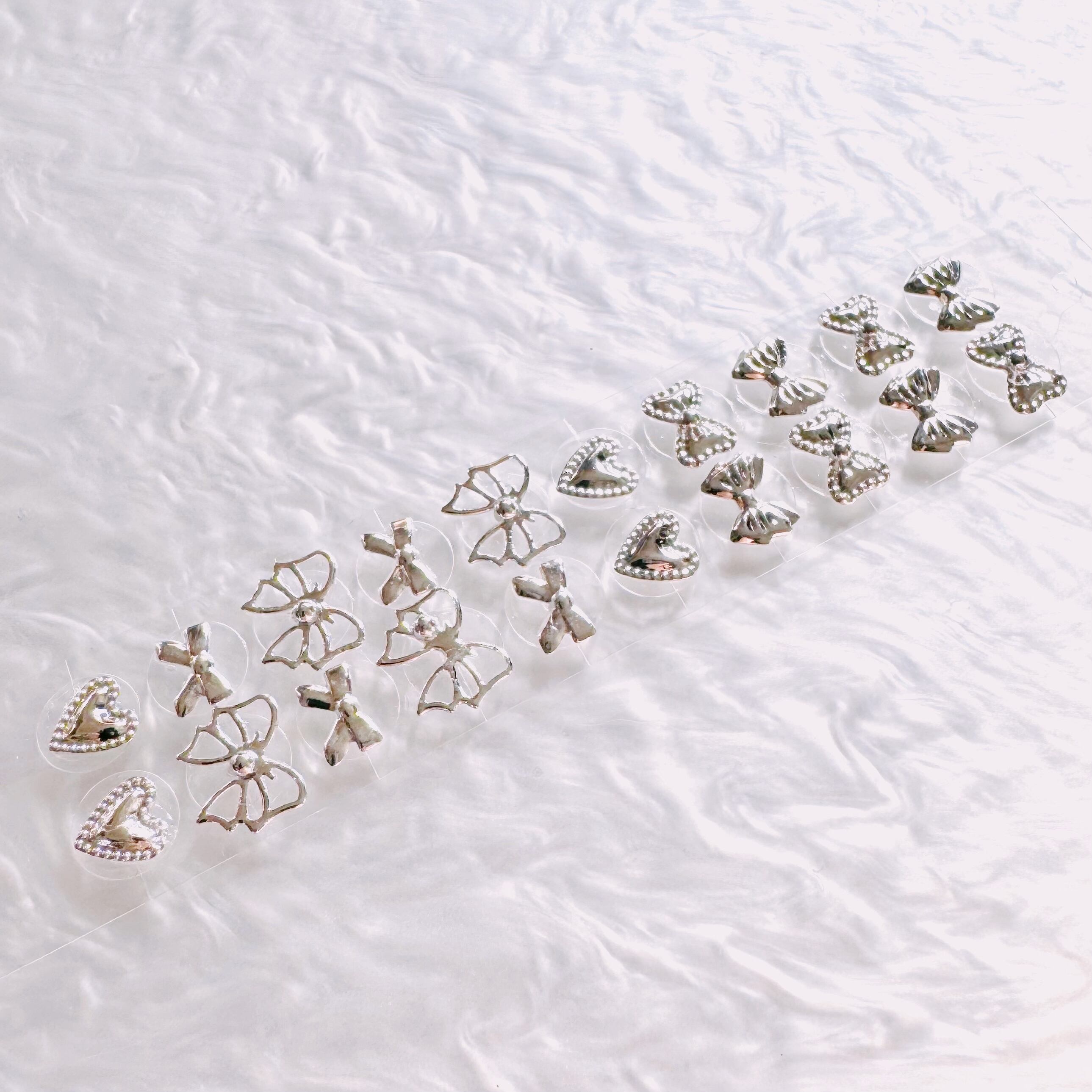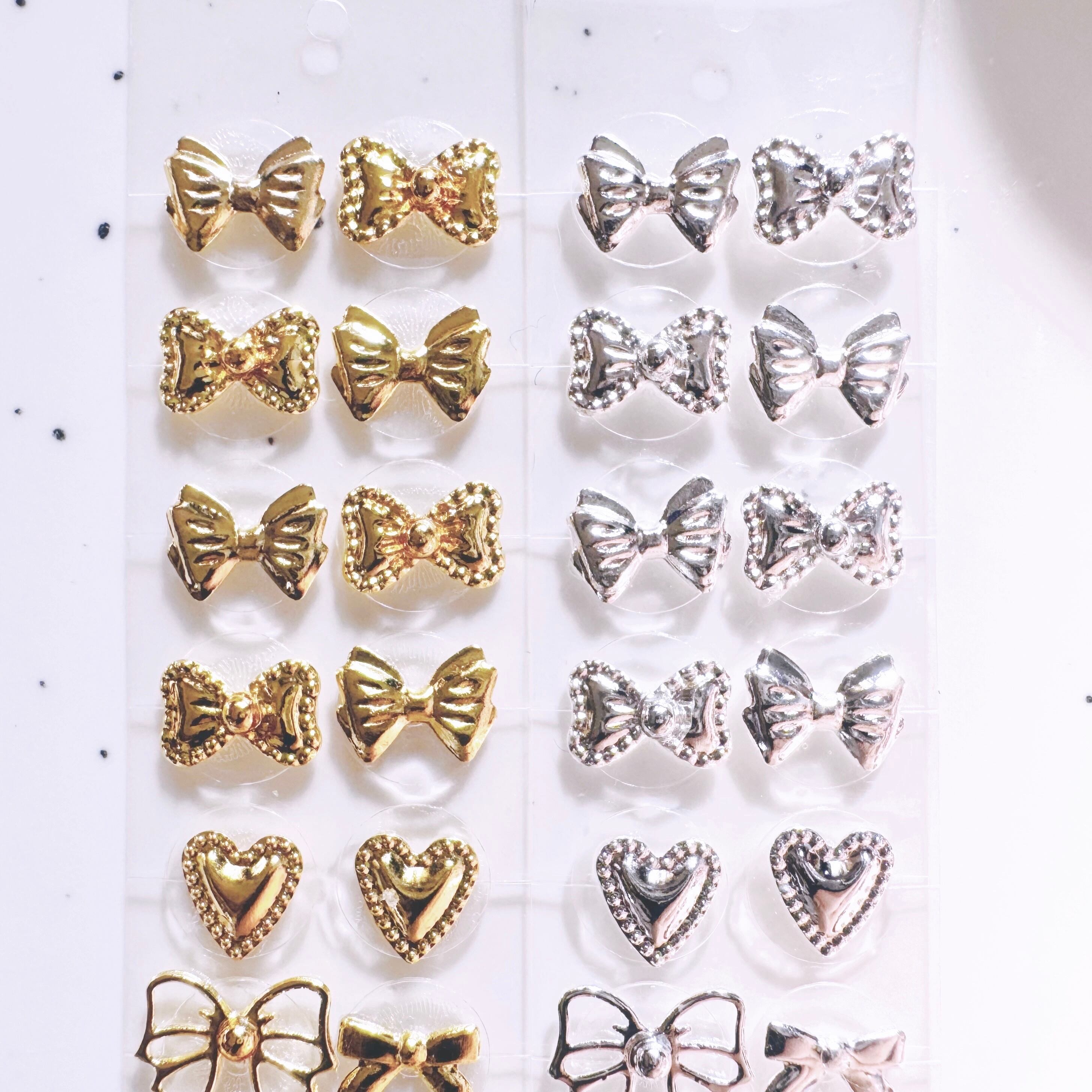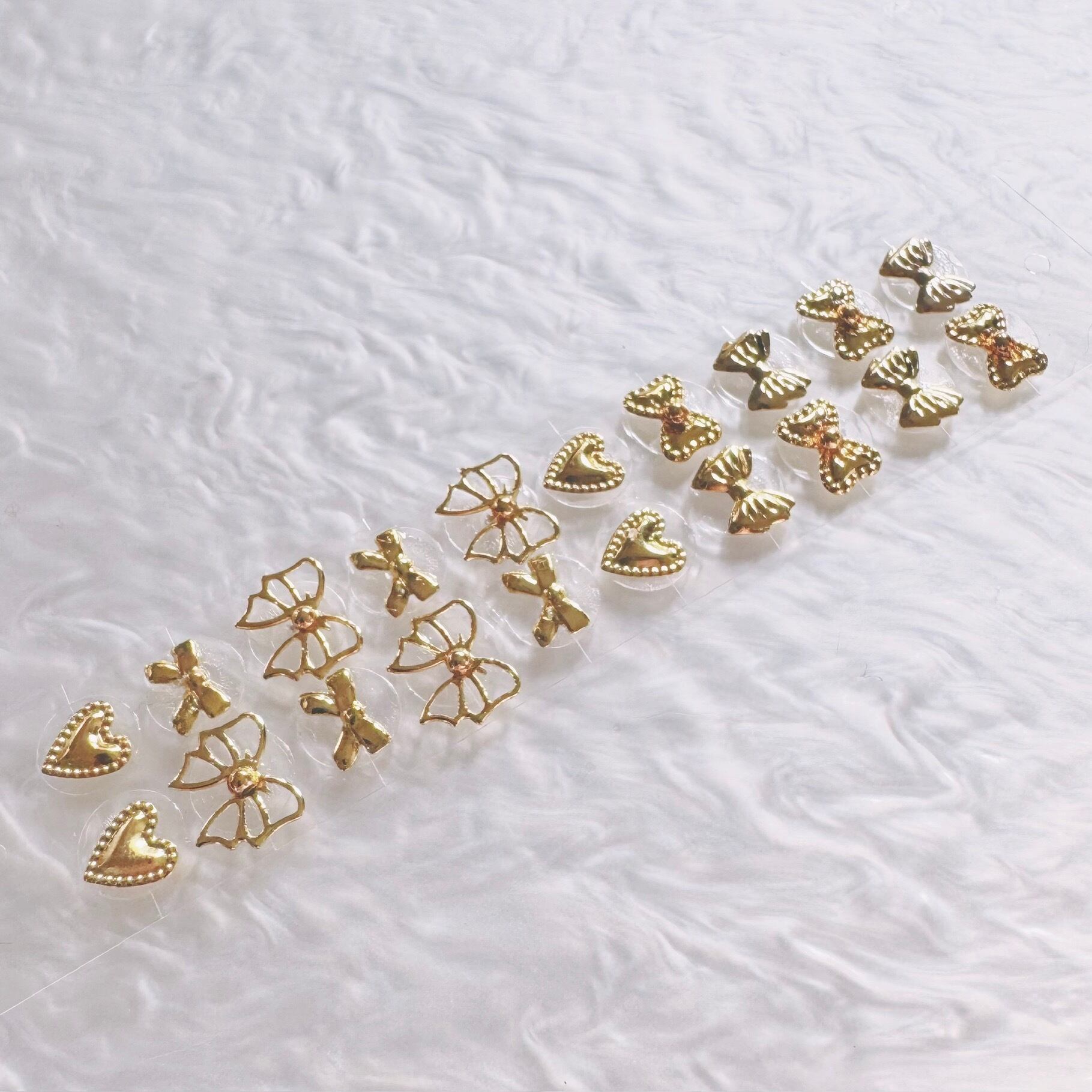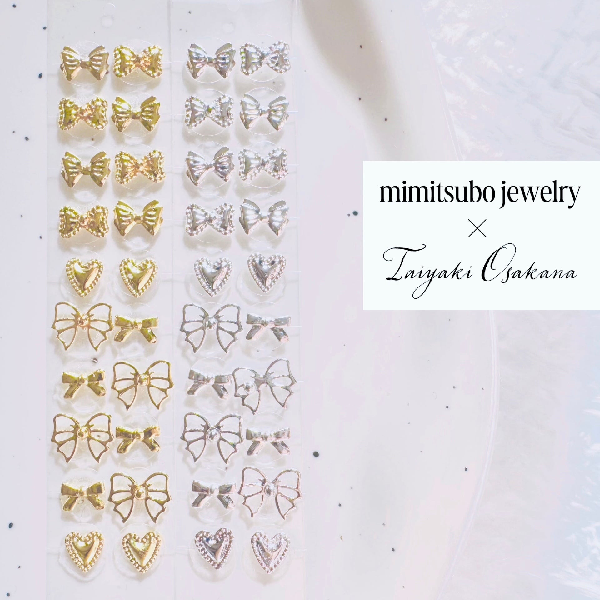 耳つぼジュエリー シンプル09 リボン ハート ゴールド シルバー 純チタン粒